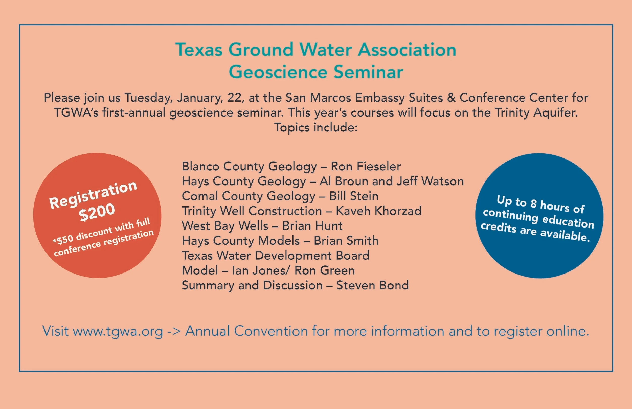 (Non AGS event) TGWA Seminar on Trinity Aquifer: Jan 22.