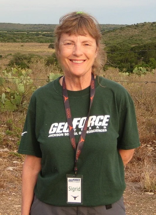 I was lucky to work with Sigrid for many years. She was always positive, smiling, and willing to do anything to help. That included taking on volunteer work with GeoFORCE, an outreach program I supervised. Sigrid helped write one of the guidebooks and participated in field trips every summer for more than five years. Each of those field trips included forty 10th grade students, and a week in the field during June and July every year. The weather was often beyond hot, and herding all those kids was exhausting. Sigrid was always on her game, and as a result, hundreds of young kids from small towns in south Texas and inner-city schools in Houston received a VIP tour of spectacular geologic settings with Sigrid as a fantastic guide. She was one of the best, and I will miss her.